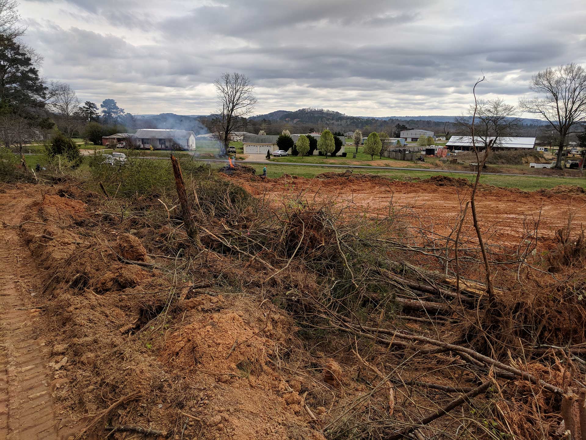 This weekend was a big weekend for the Upward Sport Flag Football fields. Trees were cleared further up toward the back of the property and a burn pile was started. The digging efforts are steadily leveling the field.
